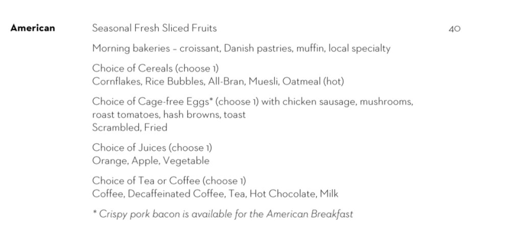 For breakfast, my brother and I ordered the American Breakfast set which goes at $40 before the usual extra charges.