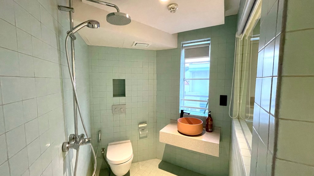 Separated by a tiled-half wall, you don’t have to worry about splashing water to the bed. Remember. You are not here to train for the olympics!