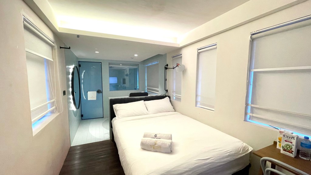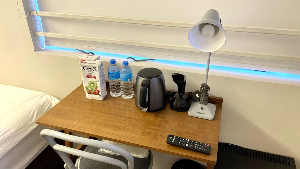 I personally prefer a wide spacious area for a room but I’ve never been in an elongated, rectangular guest room before so this was something peculiar to me. Bed was alright for me, though the pillows were too soft for my liking! But I had no expectations before coming so I wasn’t really disappointed.