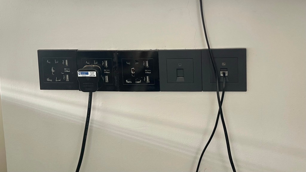 Not only they have 6 ports near to the television but there is 4 more near to the bed’s headboard! It’s really efficient to have those near to the bed cause I need my phone literally beside me all the time.