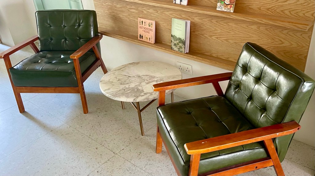 It’s really beautiful and antique, from the wallpaper to the furnitures. The check-in area has an open concept, it felt very airy and welcoming. Perfect vibe!