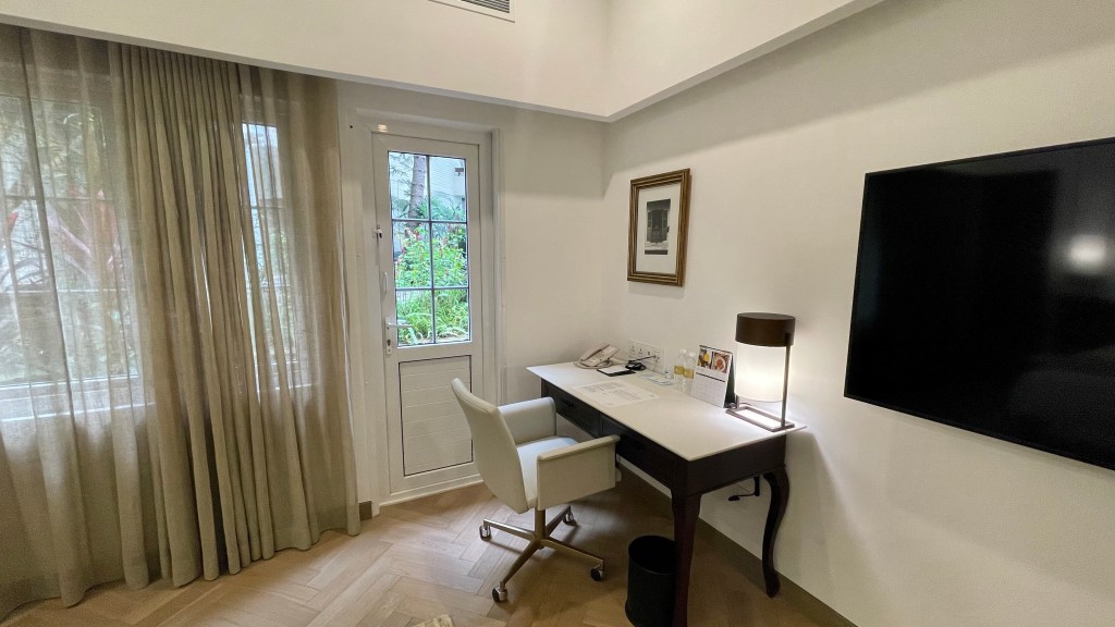 Similar to the living room, there was also a flat-screen television. Again, no screen-mirroring function on this one either. Right by it, is the work desk.