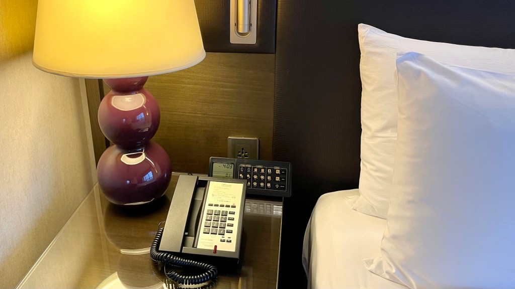 The bedside table was simple, yet practical. Everything you need is within your reach! Lamp light? Checked. A phone to call the frontdesk? Checked!