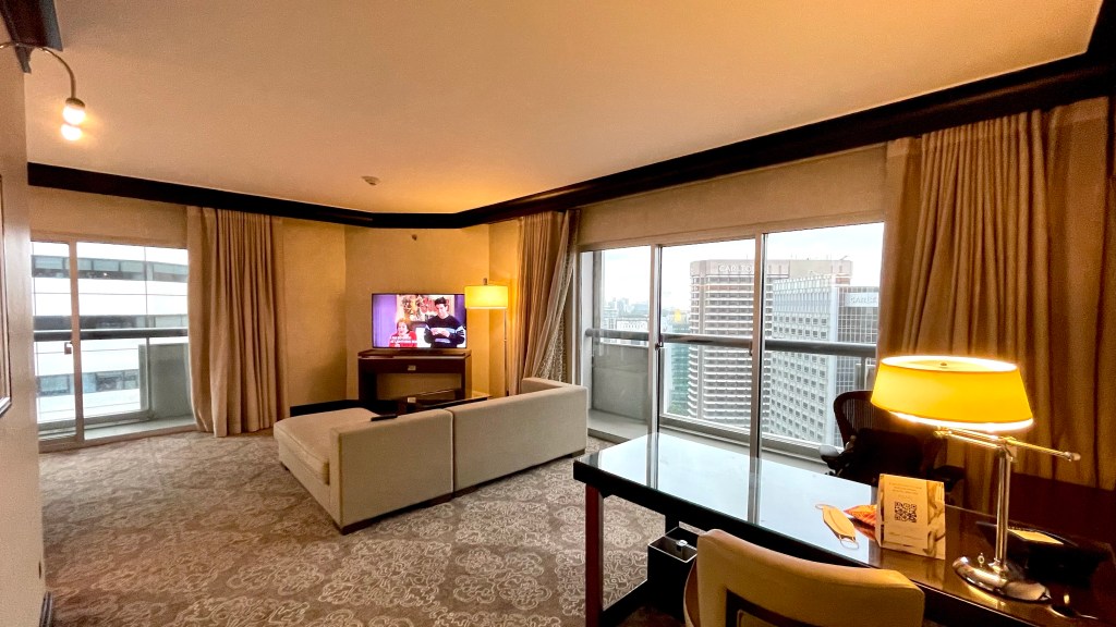 The view from the balcony behind the work area was beyond amazing. No buildings were obstructing the view of the clear skies and I’m sure if you’re assigned to a higher room than mine, you’ll definitely get a more picturesque scene. Our suite was on the 18th level, it was still great nonetheless.