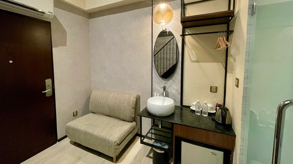 The layout and design for the loft was simple and minimalistic which is great cause you won’t be overwhelmed with so many details in one small setting. What greeted me when I opened the door was the living space where the sink and the coffee and tea-making station is.