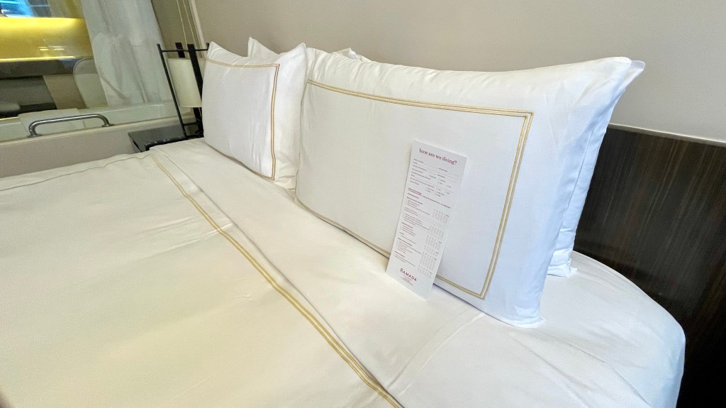 I was in love with the bed! A few hours, and I was dead and gone. I truly appreciate hotels that provide more than two pillows. There’s four here on the bed, and another extra one in the wardrobe. Pillow fights!