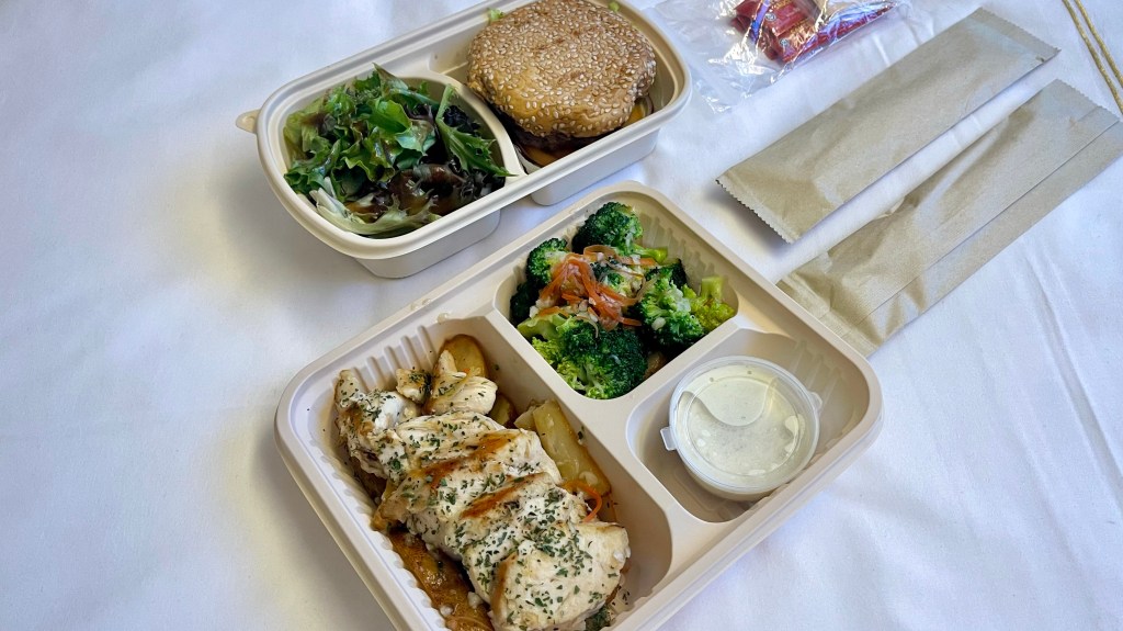 I ordered the grilled chicken and the beef burger. One downside and prolly one of my biggest pet peeve, is when food is served in a paper bento box. Let me rephrase that, it’s my biggest pet peeve when hotels serve their in-room dining food in a bento box. It diminishes part of the experience if you ask me. Apparently they said due to the pandemic, they prefer using disposable boxes. I don’t really understand that, like don’t you have a dishwasher with a hot water system to disinfect the plates? Or they don’t have enough manpower, hence nobody to man the dishwasher? I’m confused.