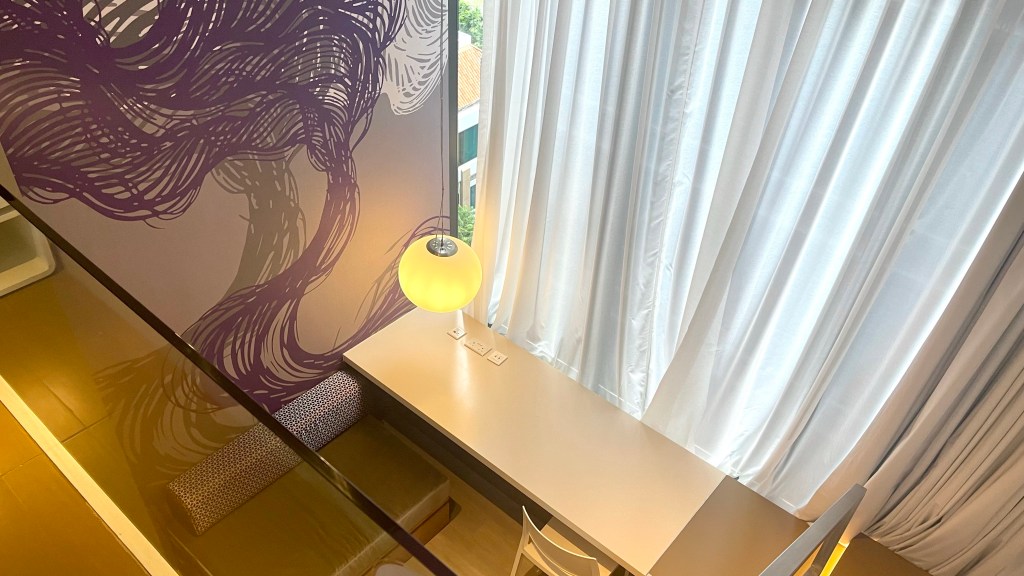 One thing I love about Studio M though, is the high ceiling with the full-walled window. Not only does it make the room brighter, it definitely doesn’t feel claustrophobic at all. Like the loft room at the Harbour Ville Hotel? The room was beyond beautiful, but sadly there wasn’t any windows or.. ventilation rather. The room really felt stuffy after some time.