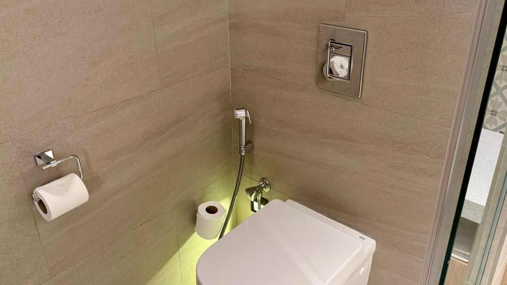 On a brighter (and hygienic?) side, there’s a bidet for the toilet. Which I really super, super appreciate. A high pressured bidet? Even better.