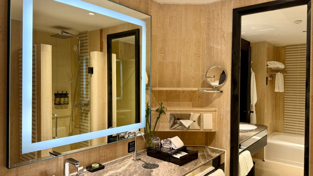 Lighting in the room is layered so there’s soft, cozy lighting for when you just want to relax, brighter lights over the desk or seating area for reading or work (so blessed I don’t need to work while I’m on staycations) and little accent lights that make the space feel more homey. Basically, you’re not stuck with one harsh overhead bulb and I really appreciate that, since now I have to wear glasses – I hate super bright lights. It’s just the Mariah Carey in me. No, she’s in Singapore Expo!