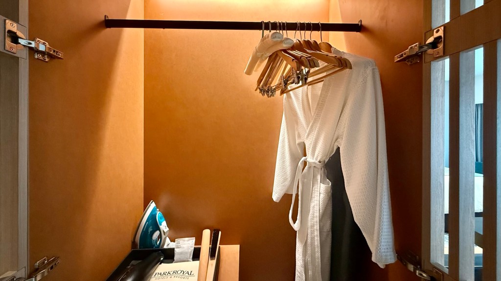 Inside the wardrobe are all the essential amenities like bathrobes, iron and a shoe horn. It’s spacious enough if you wanna store your luggage here too! I prefer mine to just be out and about, I get easier access to it anyways. I wished the bathrobes are the fluffy ones though?